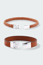 Set of 2: Black Braided Leather Bracelet